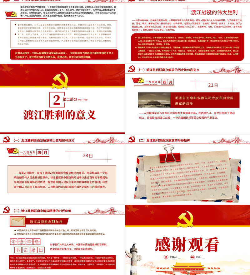 渡江精神PPT紅色莊嚴傳承渡江精神賡續紅色基因渡江戰役勝利73周年黨史學習課件 Array