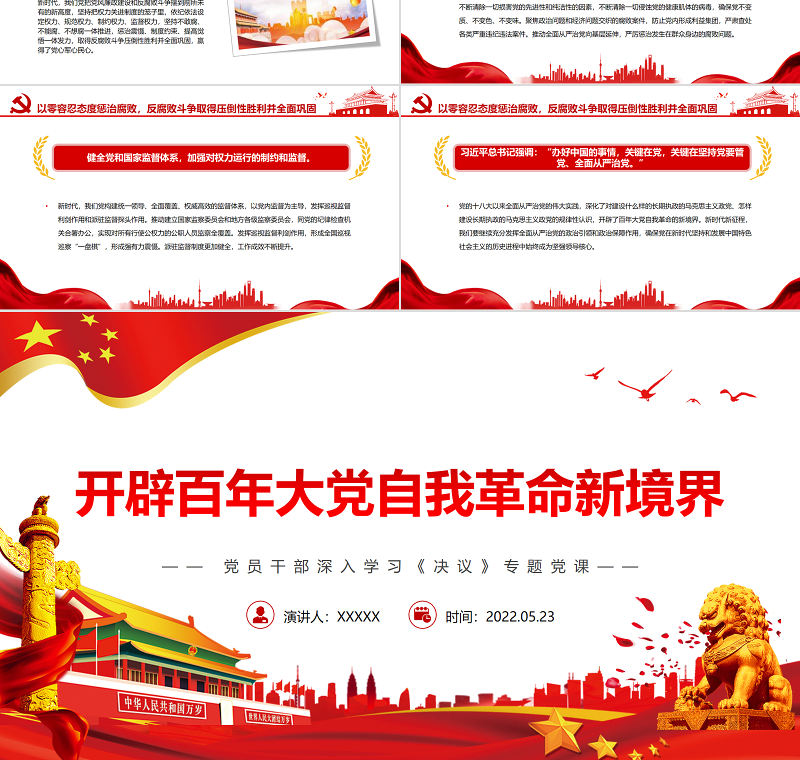 工圖網提供開辟百年大黨自我革命新境界PPT紅色黨政風黨員干部深入學習《決議》專題黨課課件供會員免費下載。更多精彩黨課PPT素材,盡在工圖網。