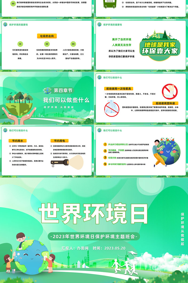 -2023年世界環境日保護環境主題班會-匯報人:辦圖網時間:2023.05.20保護環境 從我做起世界環境日