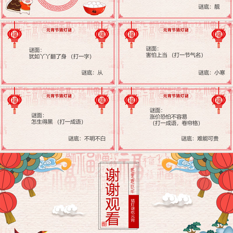原創中國風新年傳統節日元宵節猜燈謎主題班會-版權可商用