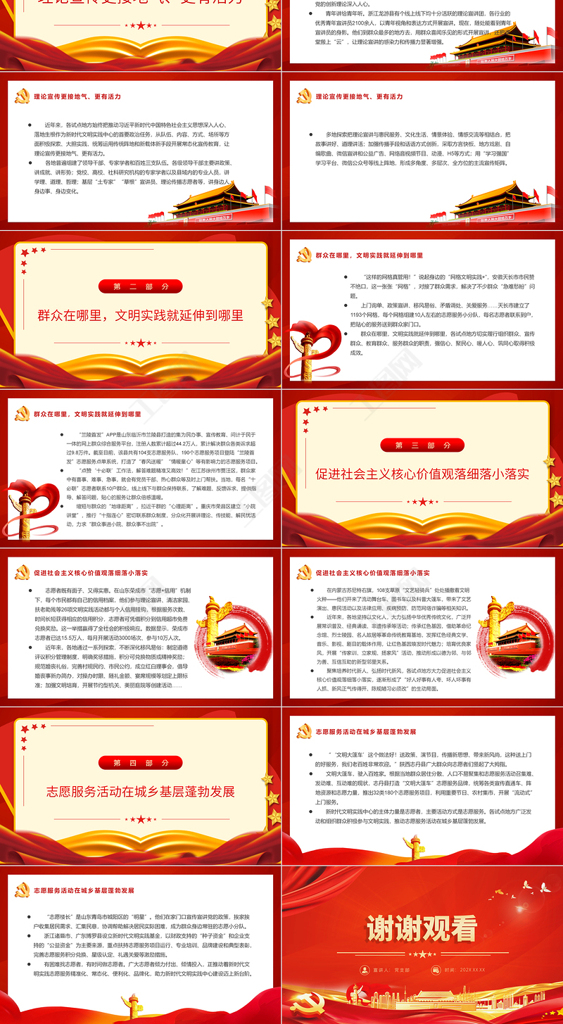 聚焦服務群眾 弘揚時代新風 PPT 紅色 簡潔 新時代文明 實踐中心試點工作 成效顯著 黨課課件 Array
