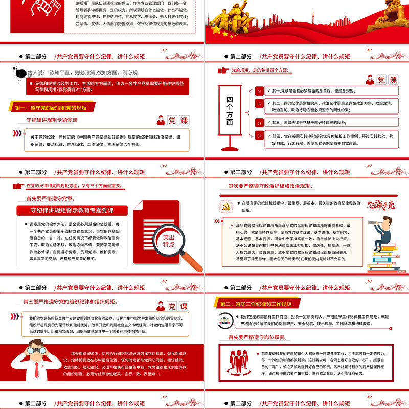 工圖網提供守紀律講規(guī)矩PPT紅色大氣黨政風爭做一名守紀律講規(guī)矩的共產黨員專題課件模板供會員免費下載。更多精彩黨課PPT素材,盡在工圖網。