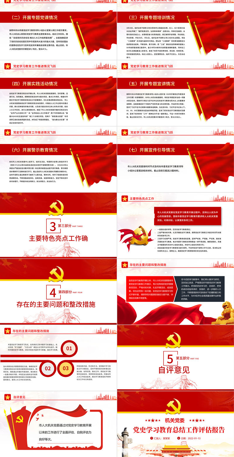 工圖網提供機關黨委黨史學習教育總結工作評估報告PPT紅色簡潔黨史學習教育啟動情況工作推進情況及特色亮點總結匯報課件供會員免費下載。更多精彩黨課PPT素材,盡在工圖網。