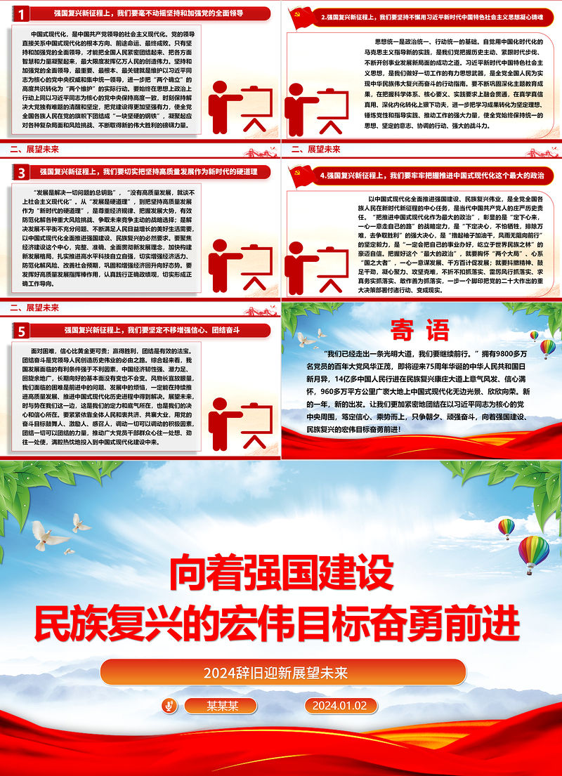 向著強國建設民族復興的宏偉目標奮勇前進ppt黨政風2024辭舊迎新總結過去展望未來黨課 Array
