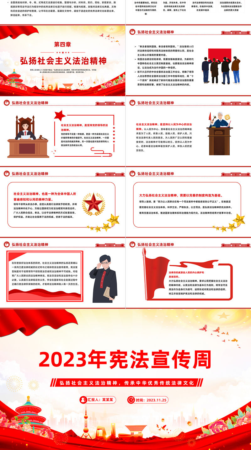 憲法宣傳周PPT紅色黨政風弘揚社會主義法治精神傳承中華優秀傳統法律文化專題課件模板下載 Array