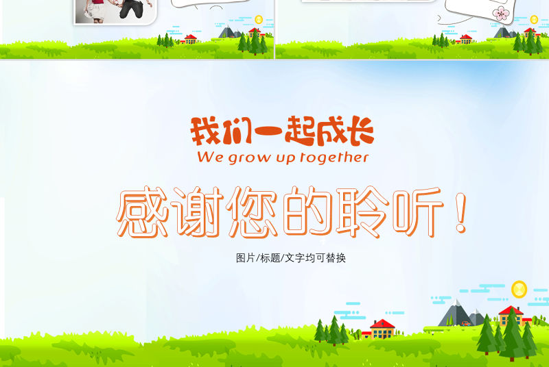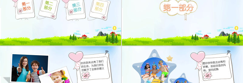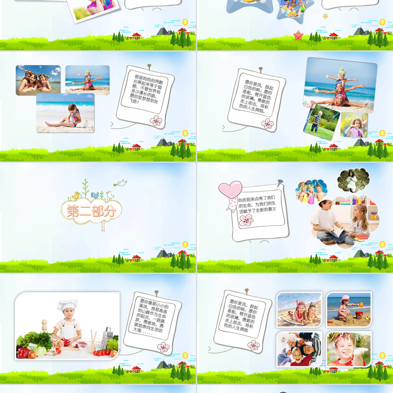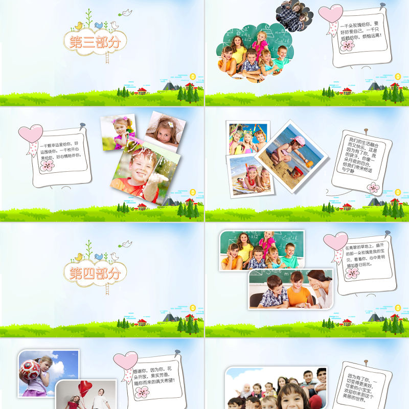 可愛溫馨彩色卡通風兒童成長相冊精美相冊寶寶生日PPT模板包含