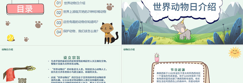 2021世界動(dòng)物日ppt綠色卡通保護(hù)動(dòng)物我們應(yīng)該怎么做學(xué)生主題班會(huì)課件 世界動(dòng)物日愛(ài)護(hù)動(dòng)物從我做起 ,世界讀書(shū)日,世界衛(wèi)生日,世界地球日,世界糧食日,世界地球日ppt,2021世界環(huán)境日 Array