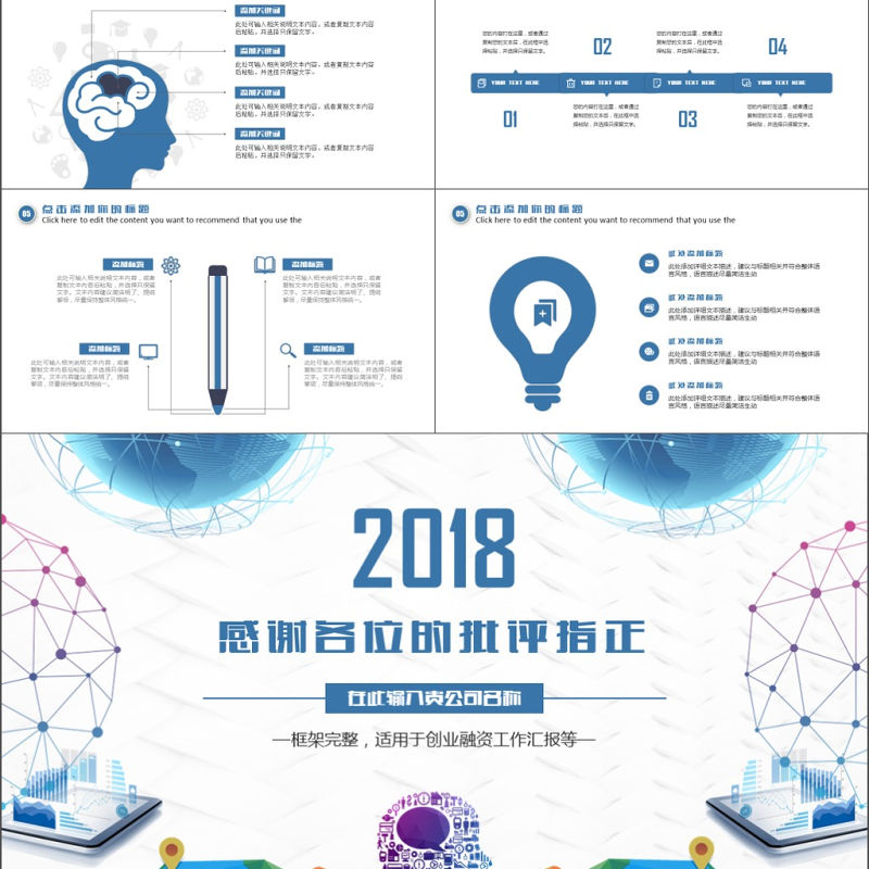 炫酷科技藍色背景工作總結新年匯報PPT包含