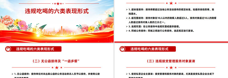 工圖網提供體制內違規吃喝超標接待的六類表現形式及自糾建議PPT課件供會員免費下載。更多精彩黨課PPT素材,盡在工圖網。