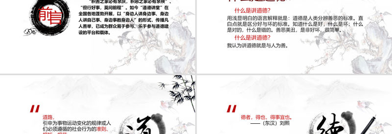 中國風國學經典講堂道德講堂校園文明教育主題班會動態PPT模板包含