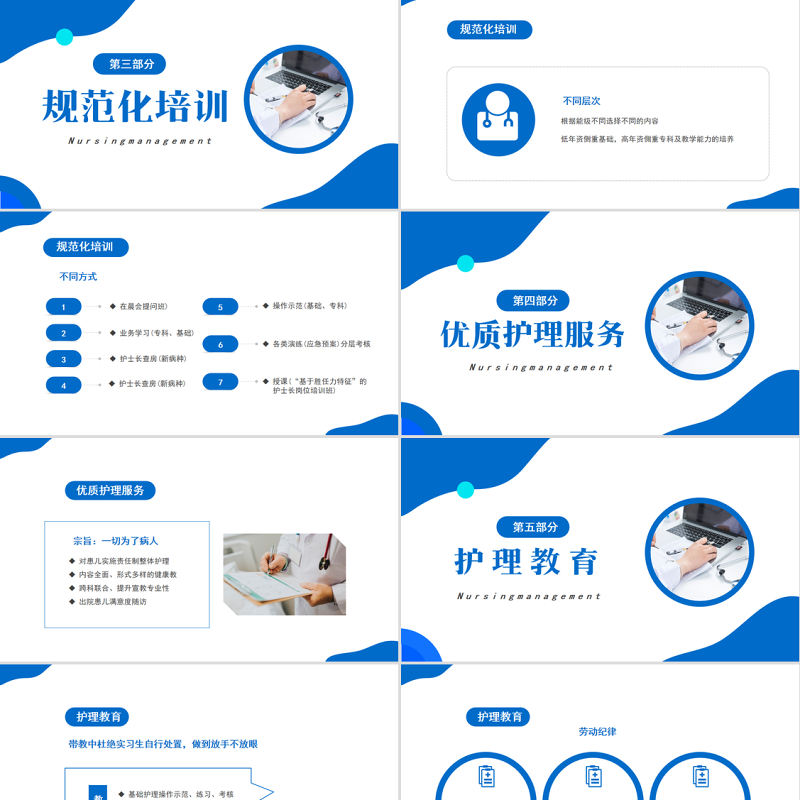 2022護(hù)士長述職報告PPT藍(lán)色幾何風(fēng)醫(yī)療系統(tǒng)工作述職報告年度工作總結(jié)模板下載 Array