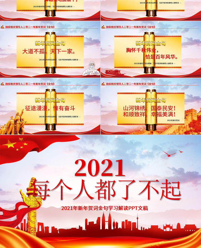 2021年新年賀詞金句學習解讀PPT文稿每個人都了不起2021