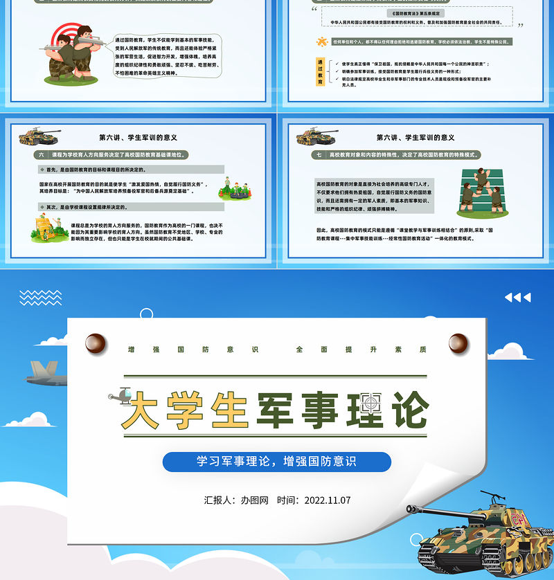 增強國防意識 全面提升素質(zhì)學(xué)習(xí)軍事理論,增強國防意識匯報人:辦圖網(wǎng) 時間:2022.11.07