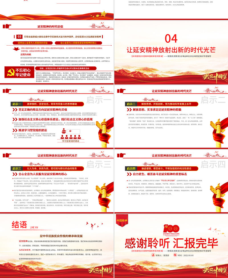延安精神專題匯報:黨支部書記【慶祝建黨100周年中國精神系列黨課】——黨支部/團支部/企事業單位2021年黨史知識專題輔導時間:2021.XX.XX