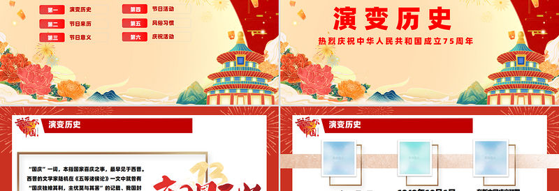 工圖網(wǎng)提供2024建國75周年P(guān)PT大氣精美喜迎國慶主題班會課件供會員免費下載。更多精彩黨課PPT素材,盡在工圖網(wǎng)。