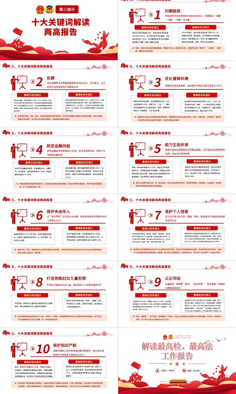 解讀最高檢最高法工作報告PPT紅色黨政風學習解讀兩會精神內涵專題課件模板