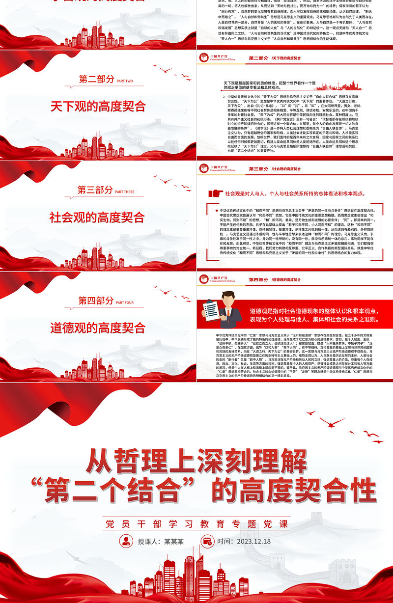 從哲理上深刻理解“第二個結合”的高度契合性PPT紅色簡潔風教育專題黨課課件模板 Array