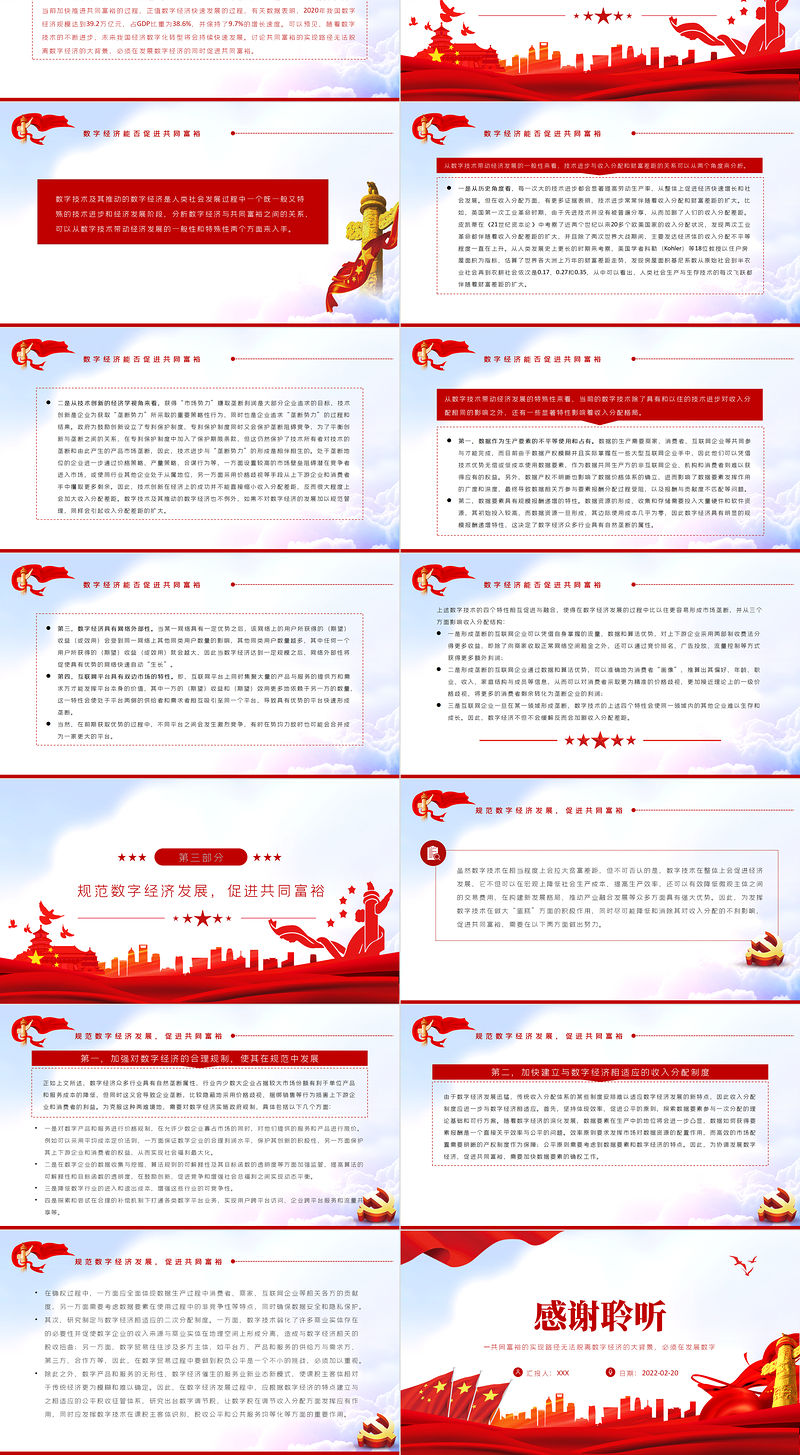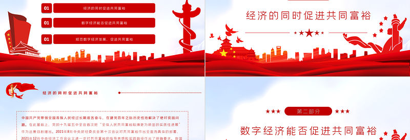 數字經濟與共同富裕PPT紅色黨政風實現共同富裕專題黨課課件模板