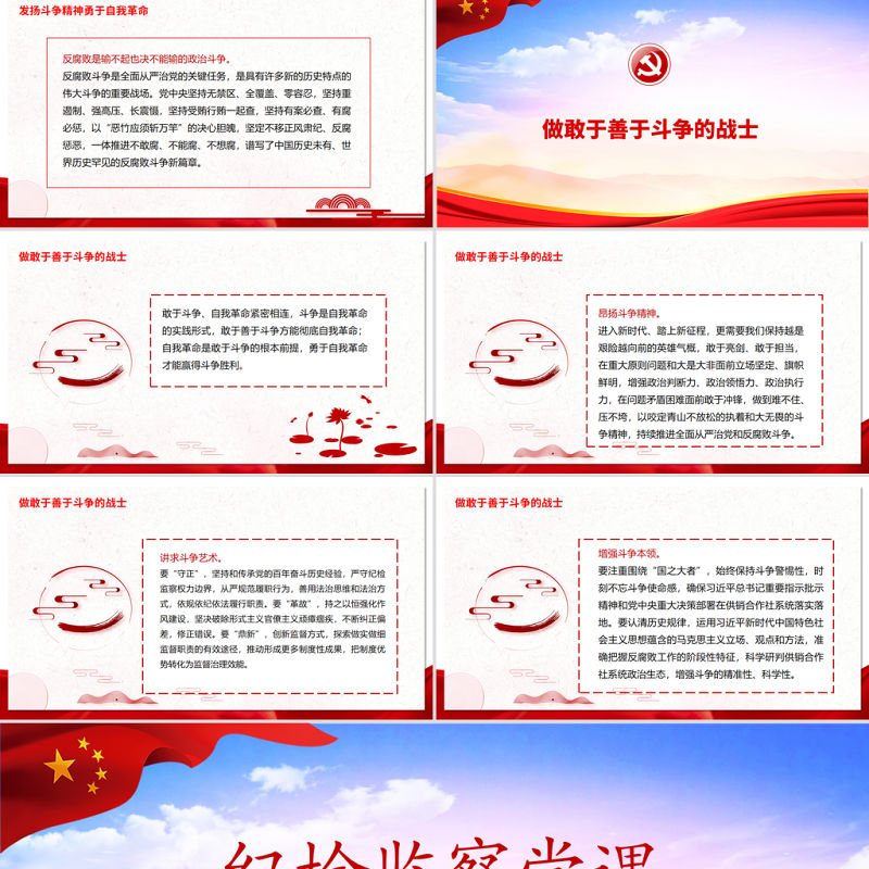 永葆斗爭精神 增強斗爭本領(lǐng) PPT 紅色 莊嚴 紀檢監(jiān)察機關(guān) 敢于斗爭 善于斗爭 專題黨課 Array