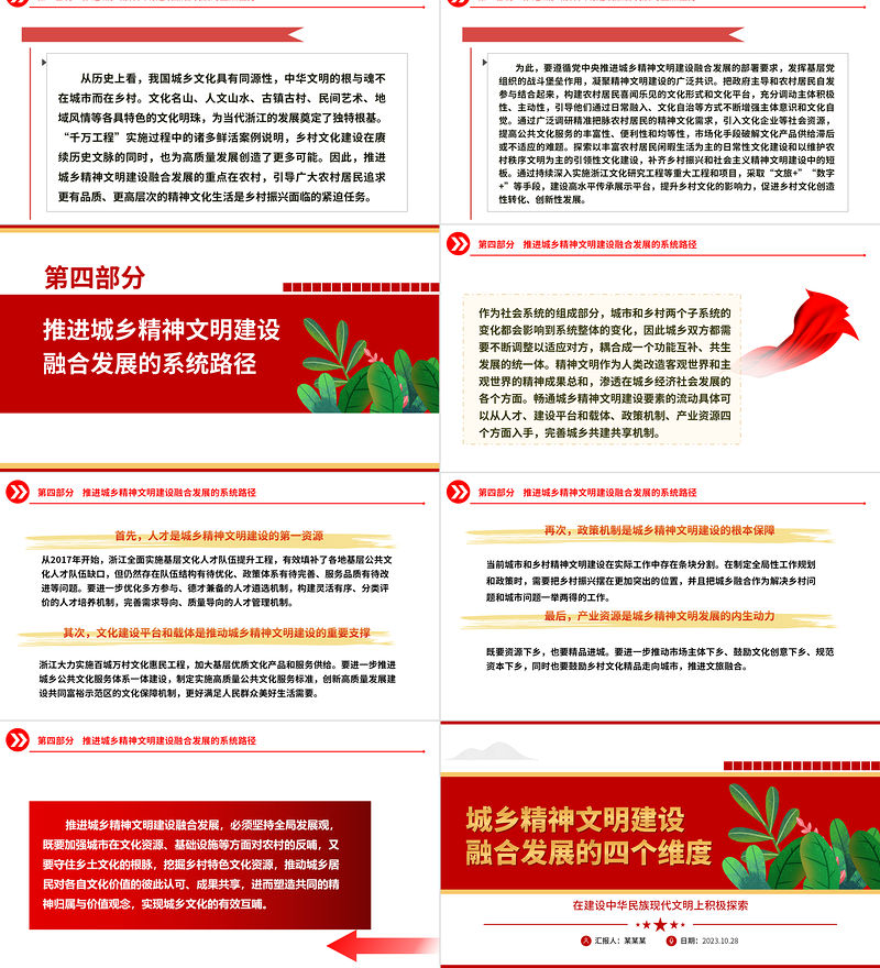 2023城鄉精神文明建設融合發展的四個維度ppt紅色創意在建設中華民族現代文明上積極探索黨政機關黨組織黨員培訓課件 Array