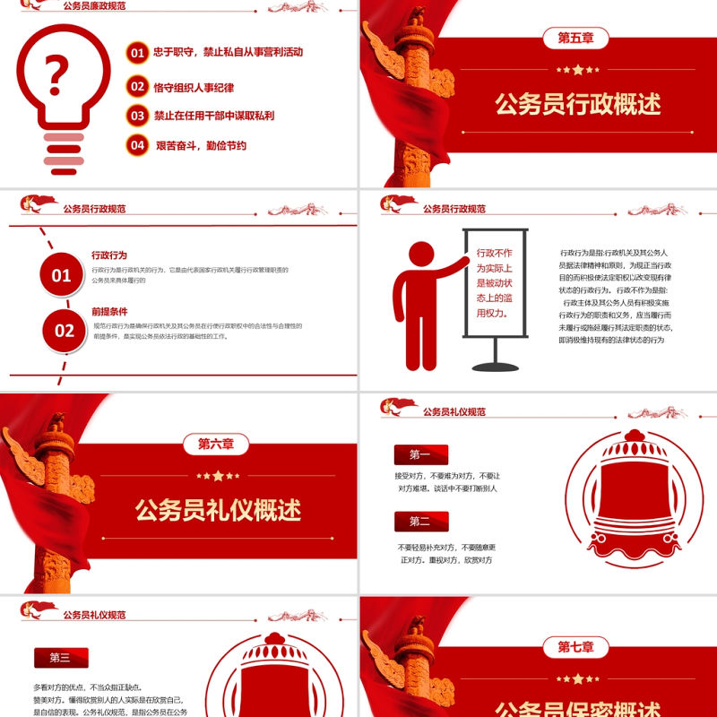 工圖網提供公務員行為規范PPT紅色簡約風公務員行為規范教養體現素質細節決定成敗專題黨課課件供會員免費下載。更多精彩黨課PPT素材,盡在工圖網。