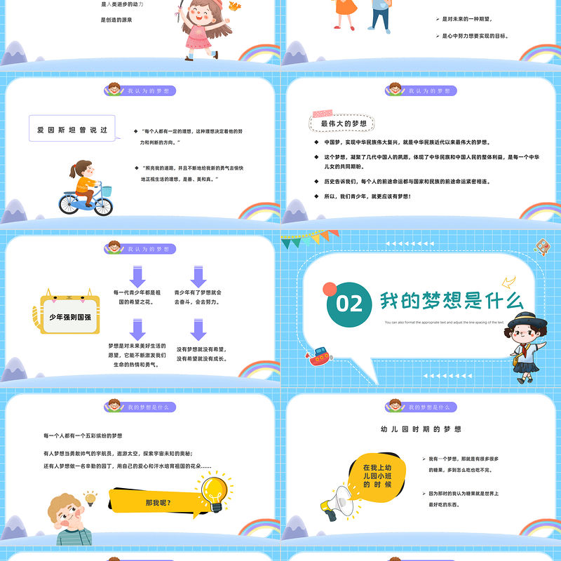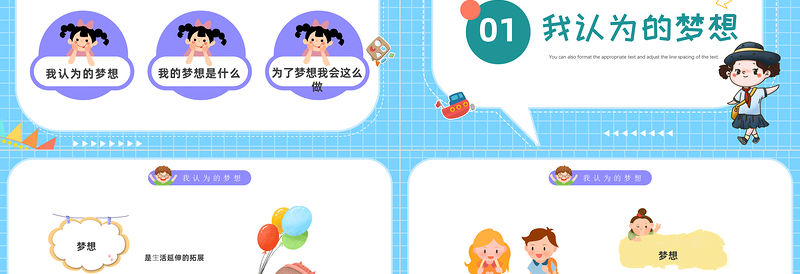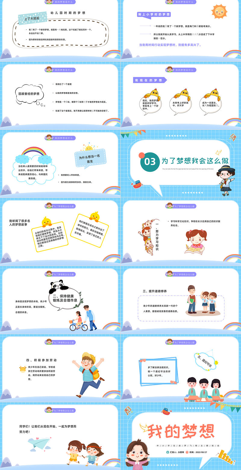 2022我的夢(mèng)想PPT卡通風(fēng)中小學(xué)生筑夢(mèng)飛翔主題班會(huì)課件模板 Array