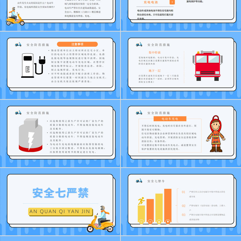 嚴禁任何人員在電瓶車中集中停放點居住或守夜嚴禁電瓶車(包括電池)進電梯,上樓入戶嚴禁在電瓶車集中停放點對易燃易爆物品或其他雜物010203安全七禁令