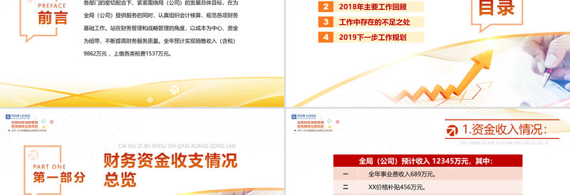 2018年,我們財務科在局(公司)領導的關心下,在機關各部門的密切配合下,緊緊圍繞局(公司)的發展總體目標,在為全局(公司)提供服務的同時,認真組織會計核算,規范各項財務基礎工作。站在財務管理和戰略管理的角度,以成本為中心、資金為紐帶,不斷提高財務服務質量。全年預計實現銷售收入(含稅)9862萬元 ,上繳各類稅費1537萬元。PREFACE前言