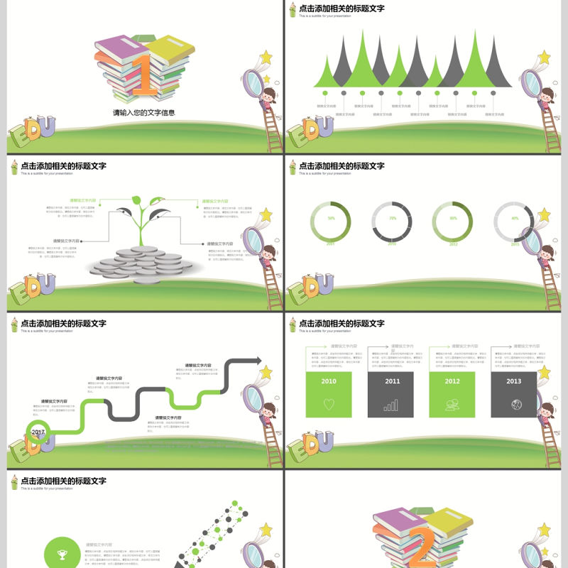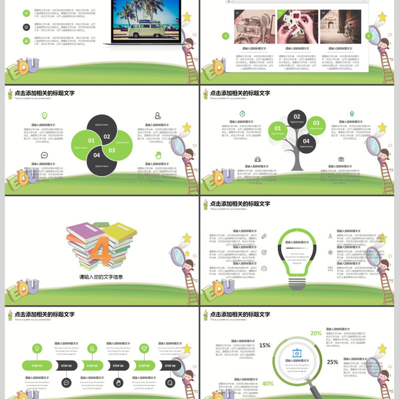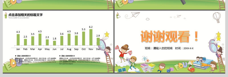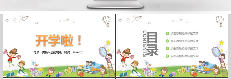 卡通幼兒園開學季學校教育教學匯報PPT模板包含