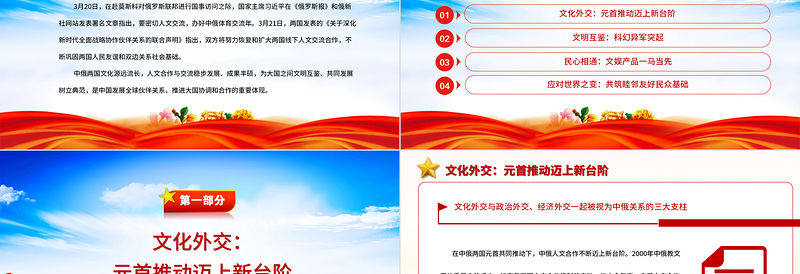 2023中俄人文交流合作為大國文明互鑒樹立典范PPT大氣精美風黨員干部學習教育專題黨課課件 Array