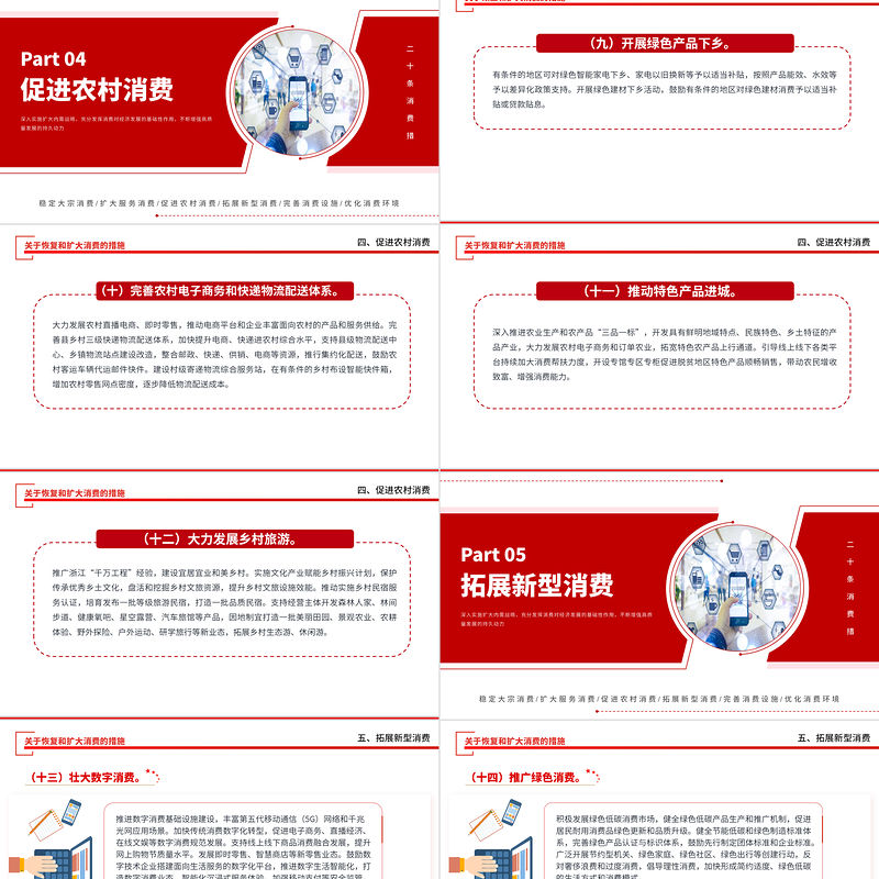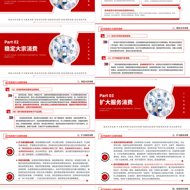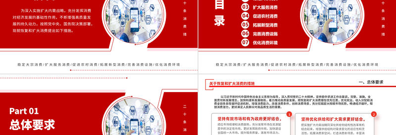 關于恢復和擴大消費的措施PPT紅色創意深入實施擴大內需戰略充分發揮消費對經濟發展的基礎性作用課件 Array