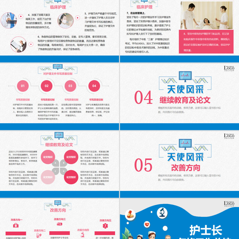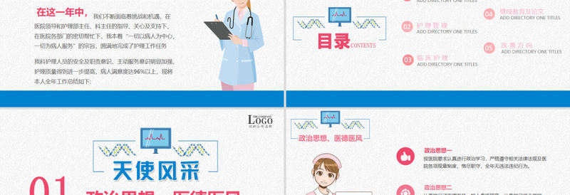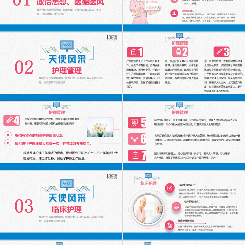 01政治思想、醫德醫風模板所有頁面均有動畫,修改方便,這里可以輸入章節的小標題,內頁圖片可自由替換。
