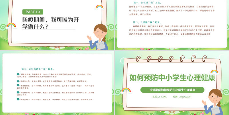 2022疫情期間如何預防中小學生心理健康PPT卡通風格中農小學生心理健康培訓主題班會課件模板