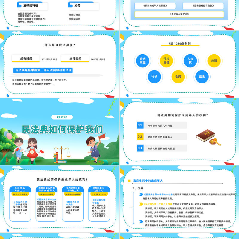 2023典亮青春護航成長PPT卡通風民法典進校園法律知識教育主題宣講班會課件模板下載 Array