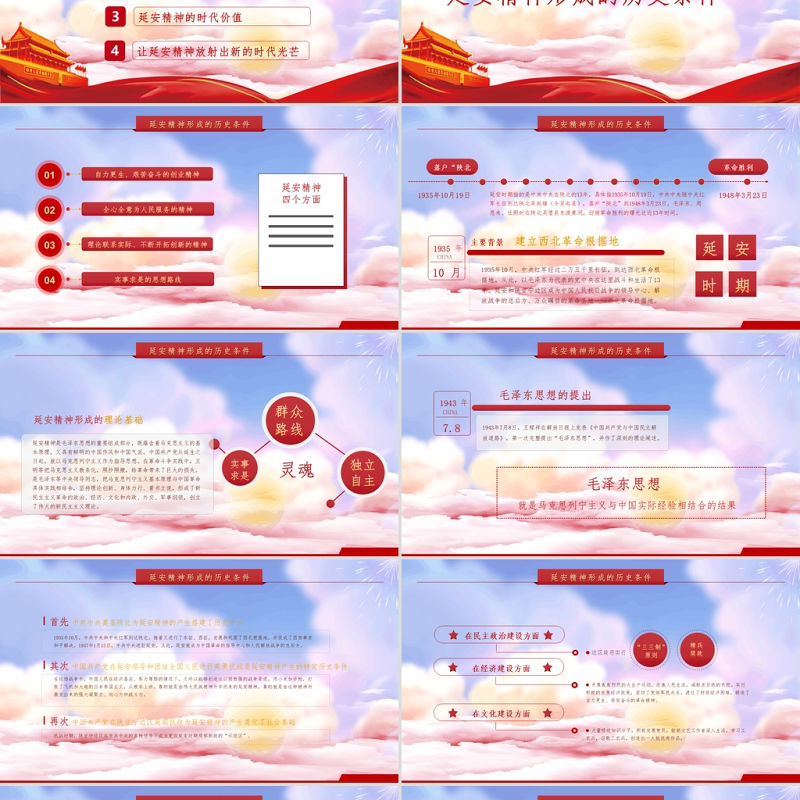 延安精神形成的歷史條件延安精神形成的理論基礎靈魂延安精神是毛zd思想的重要組成部分,既蘊含著馬克思主義的基本原理,又具有鮮明的中國作風和中國氣派。中國共產黨從誕生之日起,就以馬克思列寧主義作為指導思想。在革命斗爭實踐中,王明等把馬克思主義教條化,照抄照搬,給革命帶來了巨大的損失。是毛zd等中央領導同志,把馬克思列寧主義基本原理與中國革命具體實踐相結合,堅持理論創新、身體力行、著書立說,形成了新民主主義革命的政治、經濟、文化和內政、外交、軍事綱領,創立了偉大的新民主主義理論。