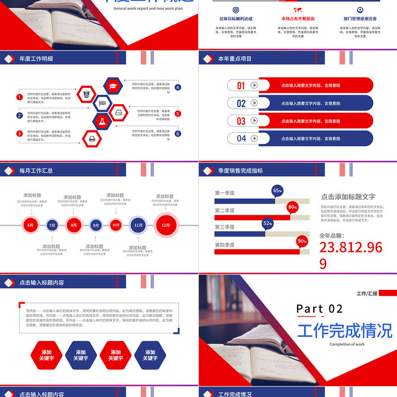 2023工作報告年終總結PPT紅色大氣簡約風年終工作總結個人年中工作情況匯報模板包含