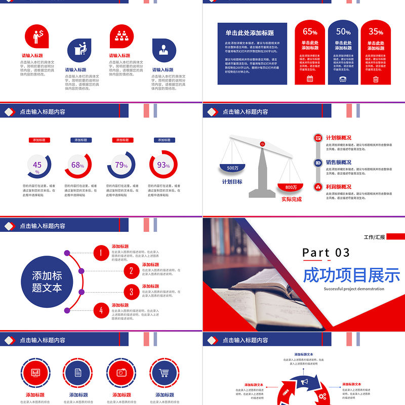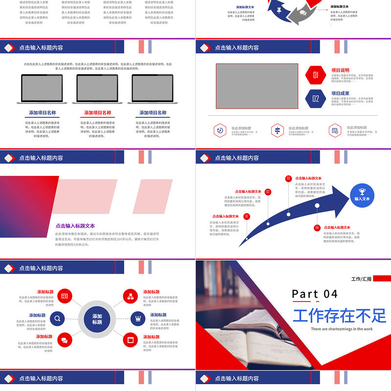 2017年微粒體商務風格大紅色工作匯報工作總結PPT模板幻燈片包含