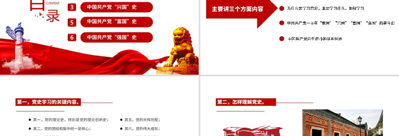 主要講三個方面內容為什么要學習黨史,主要學習什么,如何學習中國共產黨一百年“救國”“興國”“富國”“強國”的奮斗史中國共產黨百年奮斗的基本經驗