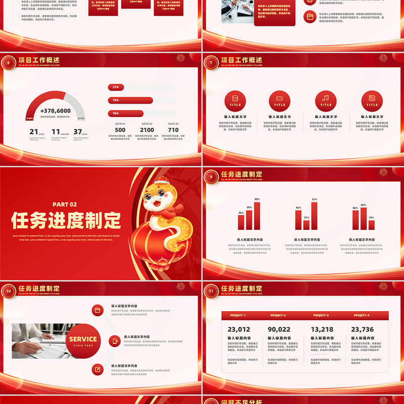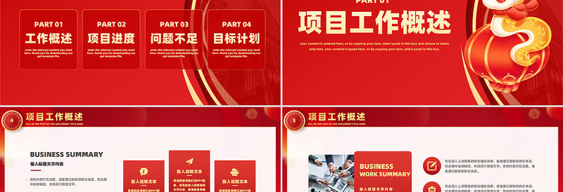 贏戰(zhàn)2025PPT精美喜慶蛇年新年工作計劃模板 Array