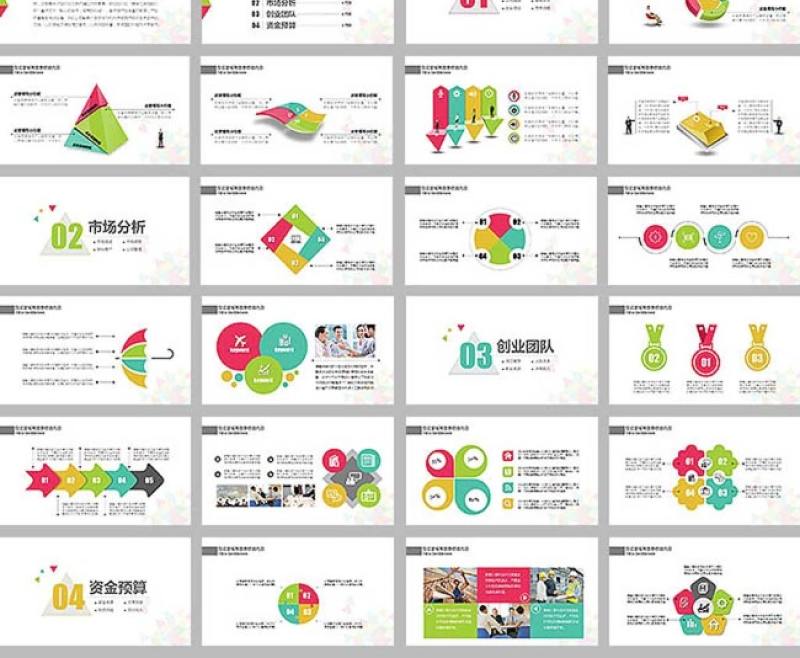 彩色拼接三角形商務工作總結ppt模板 Array