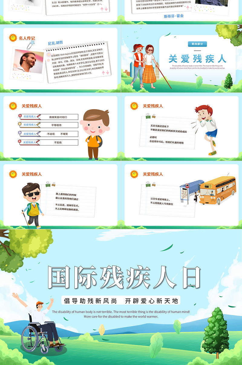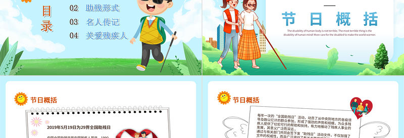 第一部分節日概括The disability of human body is not terrible. The most terrible thing is the disability of human mind! More care for the disabled to make the world warmer.