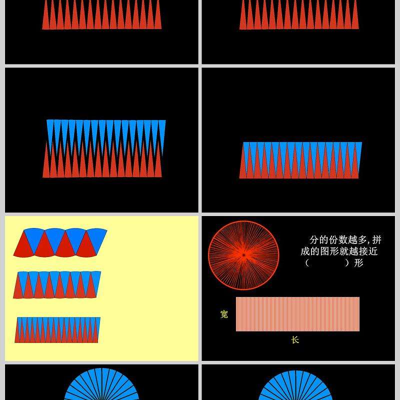 寬長 分的份數越多,拼成的圖形就越接近( )形