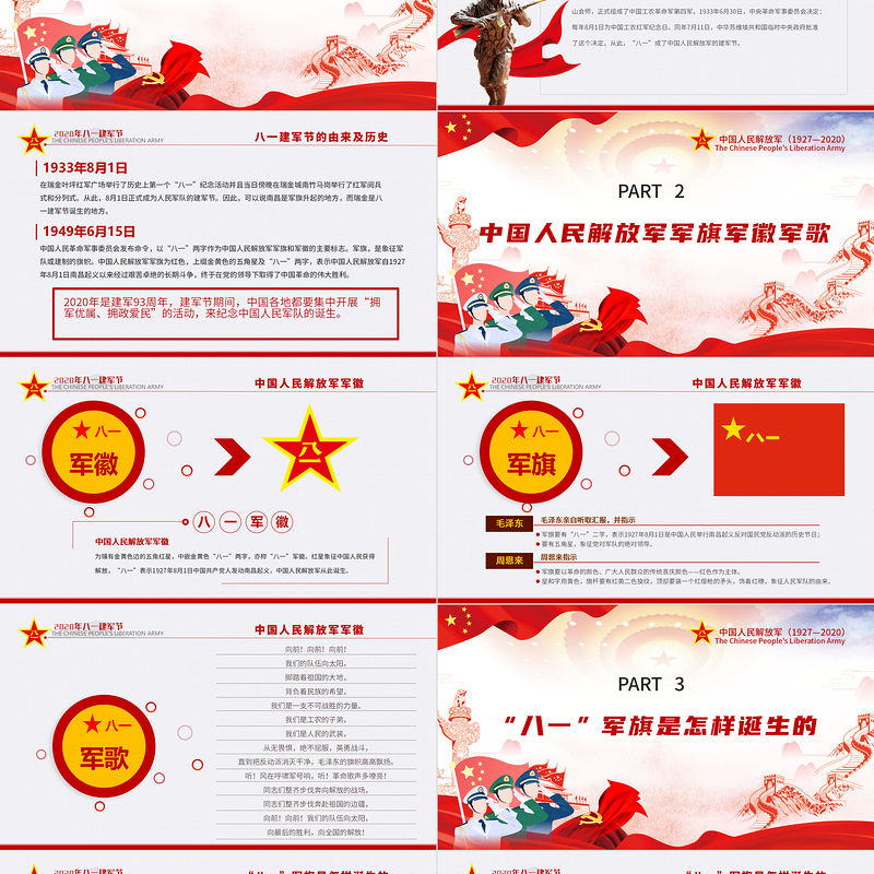2020 八一 建軍節(jié) 軍史 軍魂 國防 國防教育 愛國教育 PPT模板 建軍93周年 黨政模板 黨政軍警 建軍 黨政工作 中國 黨政 軍事鉤沉 軍史鉤沉 Array