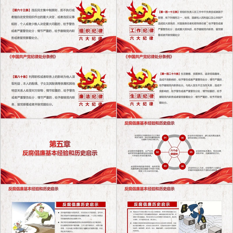 060305010204六個必須堅持必須堅持以中國特色社會主義理論體系為指導,保證黨風廉政建設和反腐敗斗爭的正確方向。必須堅持黨要管黨、從嚴治黨,始終把黨風廉政建設和反腐敗斗爭放在突出位置來抓。必須堅持黨的基本路線,始終把黨風廉政建設和反腐敗斗爭置于黨和國家工作大局中來開展。必須堅持以人為本,切實維護人民群眾的根本利益和黨員干部的合法權益。必須堅持標本兼治、綜合治理、懲防并舉、注重預防的方針。必須堅持黨的領導,建立和完善反腐改領導體制和工作機制。