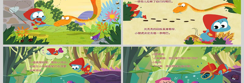 幼兒卡通兒童故事繪本PPT模板《小壁虎借尾巴》