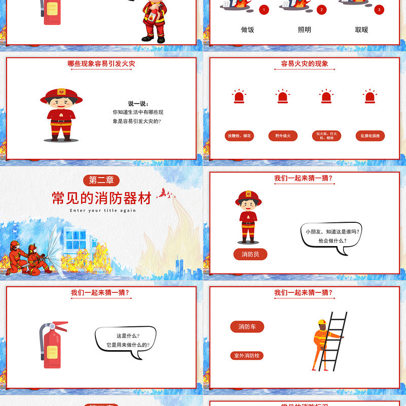 幼兒園消防安全知識PPT卡通可愛增強消防安全意識PPT Array
