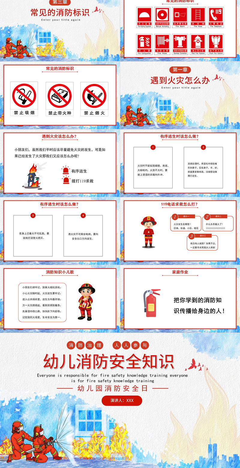 幼兒園消防安全知識PPT卡通可愛增強消防安全意識PPT