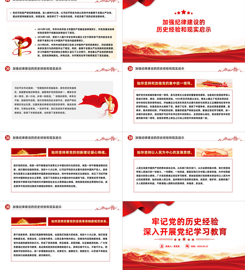 牢記黨的歷史經驗深入開展黨紀學習教育PPT簡約風全黨開展黨紀學習教育工作課件模板 Array