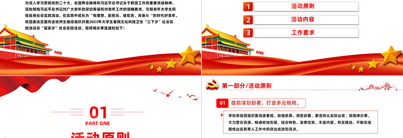 2023年度暑期“三下鄉”社會實踐活動方案PPT精美實用大學生積極投身社會實踐模板