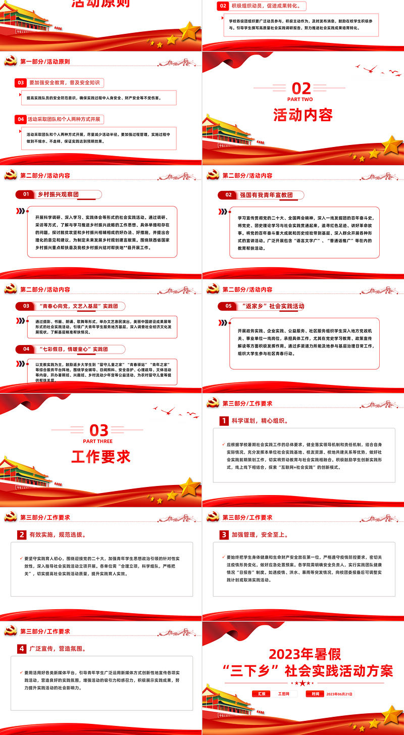 2023年度暑期“三下鄉”社會實踐活動方案PPT精美實用大學生積極投身社會實踐模板 Array